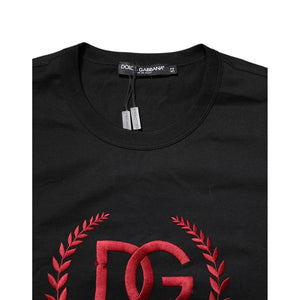 Dolce & Gabbana Black Cotton Embroidered Crew Neck T-shirt