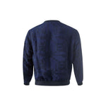 Emporio Armani crewneck sweatshirt in blue with contrasting black collar and cuffs, tone-on-tone allover geometric print, zippered breast pocket on sleeve, covered zipper on hip, relaxed fit. Composition:47% Linen, 45% Viscose, 8% Polyamide-Sku inner:23MG158-161