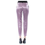 Unleash your inner fashionista with these stunning BYBLOS pants, crafted to turn heads and elevate your style game. These trousers feature a chic purple hue that adds a pop of color to any outfit, while the sophisticated blend of cotton and silk ensures comfort and luxury with every wear. Perfectly tailored with two front and two back pockets, they come adorned with a personalized BYBLOS button that adds an exclusive touch to this designer piece. Make a statement in these pants that marry comfort with high-end style.