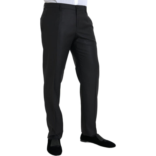 黑色羊毛真丝紧身正装裤