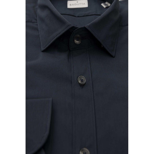 优雅蓝色棉质 T 恤,正面印有别致图案