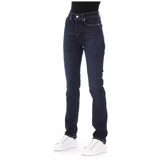 优雅蓝色棉质 T 恤,正面有时尚印花