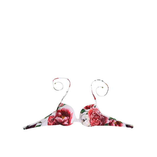 Dolce & Gabbana White Floral Print Halter Bikini Top Swimwear