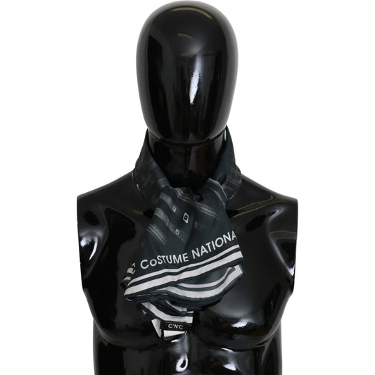 优雅丝绸印花蓝色围巾