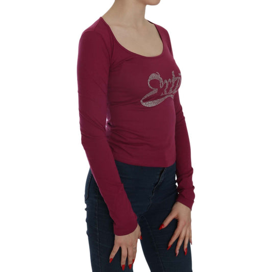 红色水晶缀饰长袖上衣