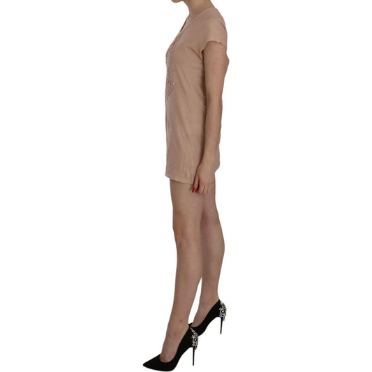 粉色蕾丝直筒迷你连衣裙 - 释放优雅气质