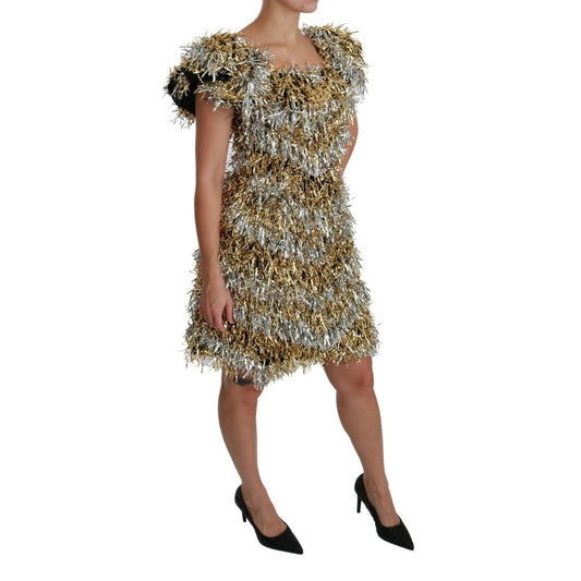 Dolce & Gabbana Silver Gold Sheath Mini Shift Gown Dress