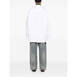white cotton classic collar chest patch pocket drop shoulder long sleeves press-stud fastening cuffs two side slit pockets curved hem front press-stud fastening When buying this unisex item, keep in mind that it is graded in standard men's sizing. Oversized cotton shirt Size and Fit - SLEEVE LENGTH: 92.0 Centimetres. LENGTH: 95.0 Centimetres.