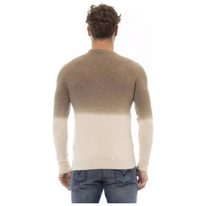 这款 Alpha Studio 奢华米色圆领毛衣为您带来精致舒适。这款毛衣采用优质材料制成,触感柔软,风格经久不衰。衣领、袖口和下摆饰有优雅的罗纹装饰,凸显其经典轮廓,是您衣橱中的精美单品。