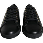 Dolce & Gabbana Black Gold Leather Classic Sneakers Shoes