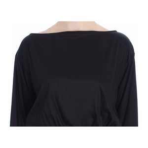 优雅黑色真丝混纺直筒连衣裙
