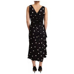 Dolce & Gabbana Black Silk Polka Dots V-neck Sheath Midi Dress