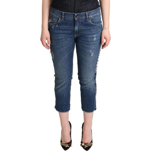 这款华丽的新款七分牛仔裤带有著名的 Dolce & Gabbana 正品标签,让您步入精致的行列。这些牛仔裤不仅是时尚的宣言,而且采用常规剪裁和中腰设计,体现了舒适感。它们采用 100% 纯棉制成,既耐用又舒适,非常适合您日常的时尚装扮或休闲的晚间外出。