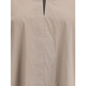 Brunello Cucinelli’s Wide Shirt is an elegant and airy piece, featuring a V-neck embellished with shimmering jewels that add a touch of discreet light. A classic collar and wide sleeves complete the design with a comfortable and sophisticated fit, perfect for effortless elegance.