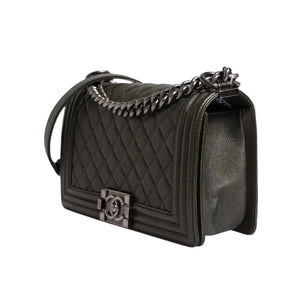 This Chanel Boy Bag in size Medium in gorgeous green leather.