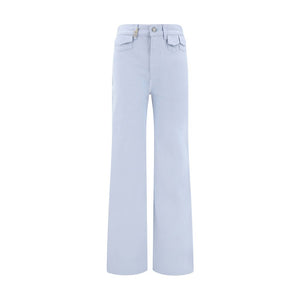 Chloé’s flare Jeans are a sleek, modern fit with a silhouette that opens gently towards the bottom, creating a sleek and elegant effect. The zip-and-button front closure ensures a perfect fit, while the belt loops at the waistband are embellished with a gold dart with the brand’s logo, adding a touch of understated luxury. The two patch pockets on the back and three mini pockets on the front complete the design, combining functionality and style. Perfect for a chic and contemporary look, these jeans offer comfort without sacrificing class.
