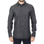 这款绝对令人惊艳的 100% 正品 Ermanno Scervino 休闲衬衫散发着精致气息。这款灰色牛仔纽扣前襟衬衫做工精良,略带弹力,穿着舒适,是您衣橱中的百搭单品。它完美呈现精致而休闲的造型,配有优雅的徽标细节,体现了设计师对细节和品质的关注。