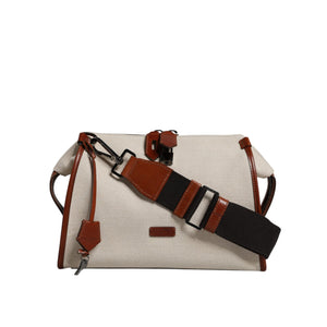 Dolce & Gabbana Beige Brown Cotton Leather Duffle Shoulder Bag