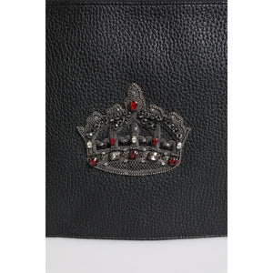 Dolce & Gabbana Black Calfskin Crown Embellished Clutch Pouch Bag