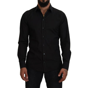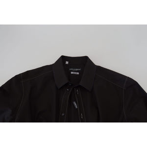 Dolce & Gabbana Black Cotton Collared Long Sleeve GOLD Shirt