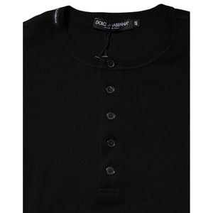 Dolce & Gabbana Black Cotton Knit Crew Neck Henley T-shirt