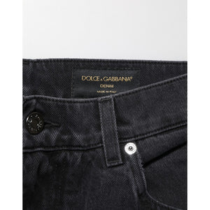 Dolce & Gabbana Black Cotton Logo Men Mid Waist Denim Jeans