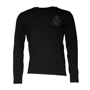 Dolce & Gabbana Black Crown Heart Crew Neck Pullover Sweater