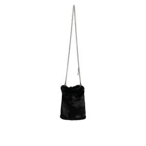 Dolce & Gabbana Black Faux Fur Silver Chain Crossbody Shoulder Purse Bag