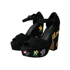 Dolce & Gabbana Black Floral Ankle Strap Heels Sandals Shoes