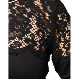Dolce & Gabbana Black Floral Lace Silk Pullover Blouse Top