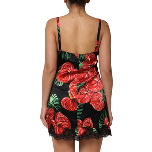 Dolce & Gabbana Black Floral Lace Trim Chemise Lingerie Dress