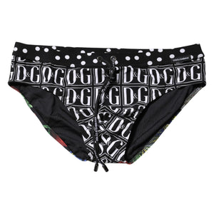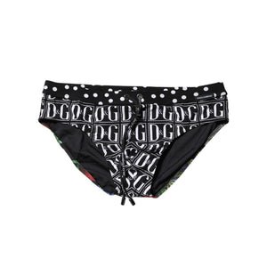 Dolce & Gabbana Black Floral Logo Beachwear Men Brief Swimwear