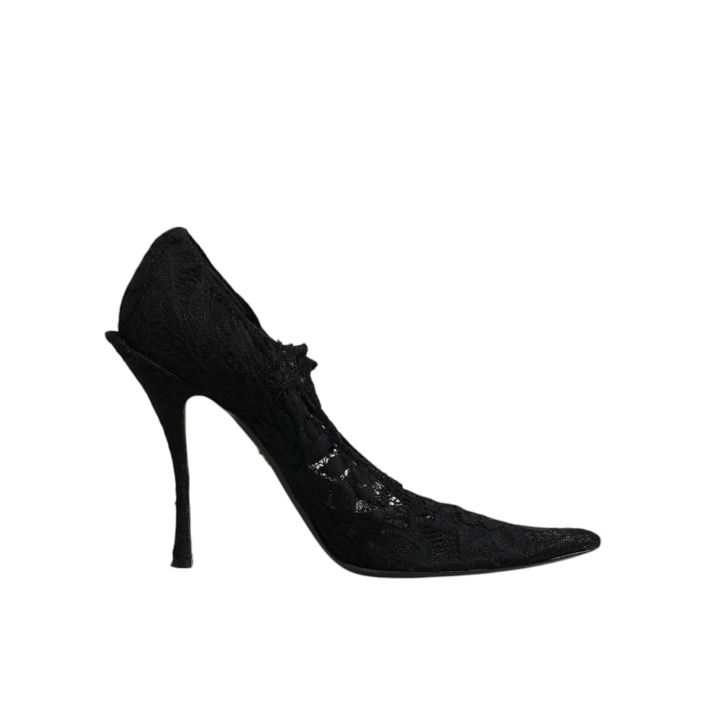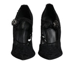 Dolce & Gabbana Black Lace Crystals Mary Jane Pumps Shoes