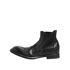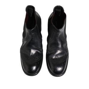 Dolce & Gabbana Black Leather Ankle Boots Slip On Shoes