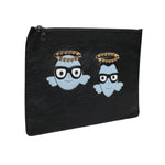 Dolce & Gabbana Black Leather #DGFAMILY Embellished Men Zip Pouch Bag