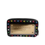 Dolce & Gabbana Black Leather LED Logo Wrist Strap Clutch Bag