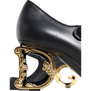 Dolce & Gabbana Black Leather Logo Heels Mary Janes Pumps Shoes