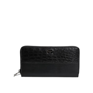 Dolce & Gabbana Black Leather Logo Plaque Zip Around Continental Wallet