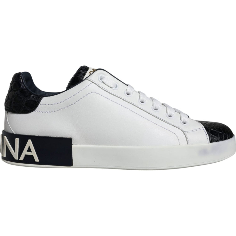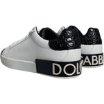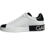 Dolce & Gabbana Black Leather Logo Portofino Sneaker Shoes
