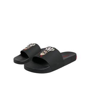 Dolce & Gabbana Black Leather Slides Sandals Beachwear Shoes