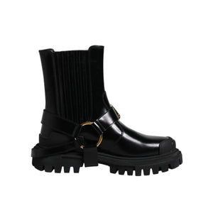 Dolce & Gabbana Black Leather Slip On Stretch Trekking Boots Shoes
