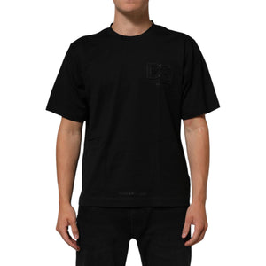 Dolce & Gabbana Black Logo Patch Cotton Men Crew Neck T-shirt