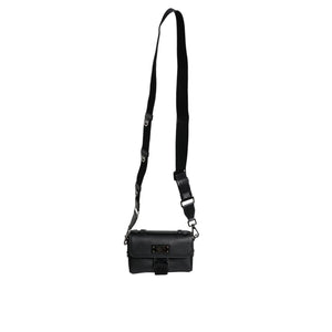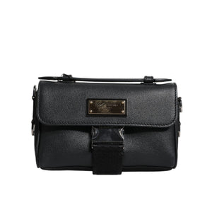 Dolce & Gabbana Black Logo Plaque Leather Buckled Shoulder Crossbody Bag