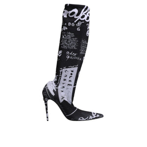 Dolce & Gabbana Black Logo Stretch Heels High Boots Shoes