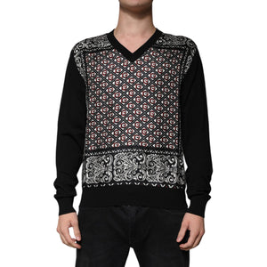 Dolce & Gabbana Black Logo Wool V-neck Pullover Sweater