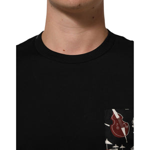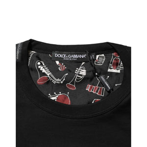 Dolce & Gabbana Black Musical Print Cotton Crew Neck T-shirt