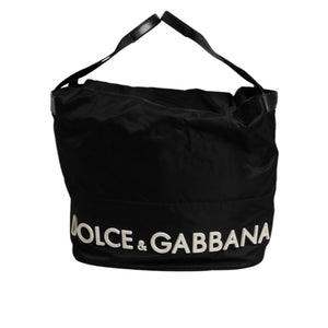 Dolce & Gabbana Black Nylon White Iconic Logo Shoulder Bucket Bag