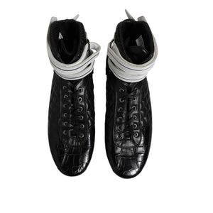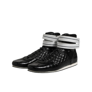 Dolce & Gabbana Black Quilted Leather Lace Up Sneakers Shoes