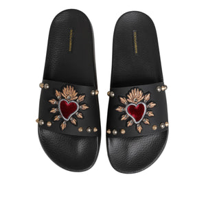 Dolce & Gabbana Black Rubber Sacred Heart Slides Men Beachwear Shoes