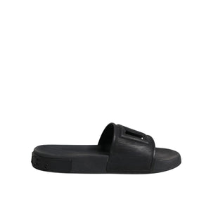 Dolce & Gabbana Black Rubber Slides Sandals Beachwear Shoes
